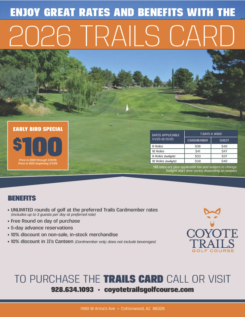 - UNLIMITED rounds of golf at the preferred Trails Cardmember rates (includes up to 3 guests per day at preferred rate)